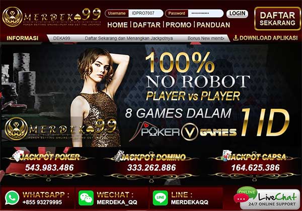 Perlu diketahui, Merdeka99 menyediakan banyak permainan Pkv Games Online terfavorit yaitu Domino99, AduQ, Bandar Poker, BandarQ, Texas Poker, Bandar Sakong, Bandar66 & perang baccarat. semua permainan di atas bisa Anda mainkan dalam 1 (satu) Akun Merdeka99 yang Anda miliki. Jadi lebih praktis karena tidak perlu membuat banyak akun untuk setiap permainan yang akan Anda mainkan.